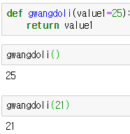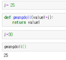 위 사진처럼 변수 j의 값이 나중에 30으로 바뀌었더라도 gwangdoli 함수 실행시 처음 정의되었던 변수 j의 값 25를 사용한다.