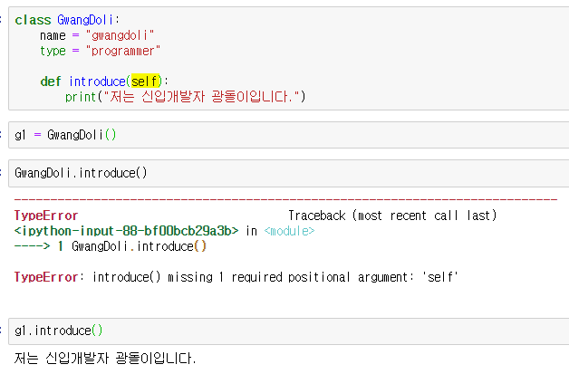 이번에는 클래스안에 함수를 추가했다. (클래스 안의 함수를 메서드라고 부른다)