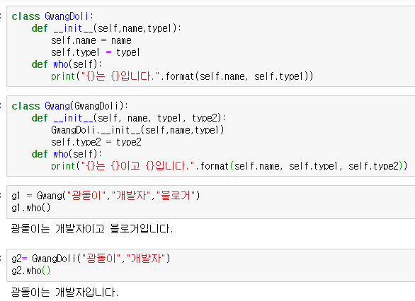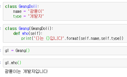 위 예시를 보면 자식클래스 객체에서 부모클래스의 변수들을 사용한 모습을 볼 수 있다.