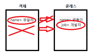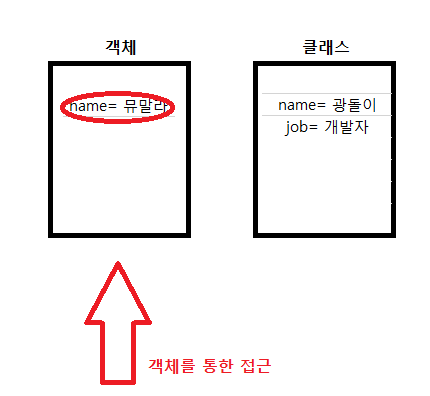 위 그림처럼 객체와 클래스에는 각각 네임스페이스가 있으며 객체가 클래스를 상속받는 구조이다.