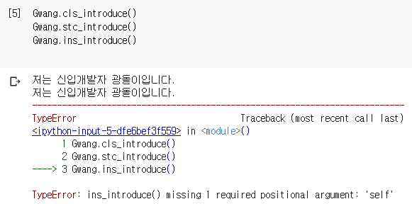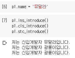 ins_introduce의 매개변수가 self(자신 객체)이기 때문에 self.name인 '뮤말라'를 호출한다.